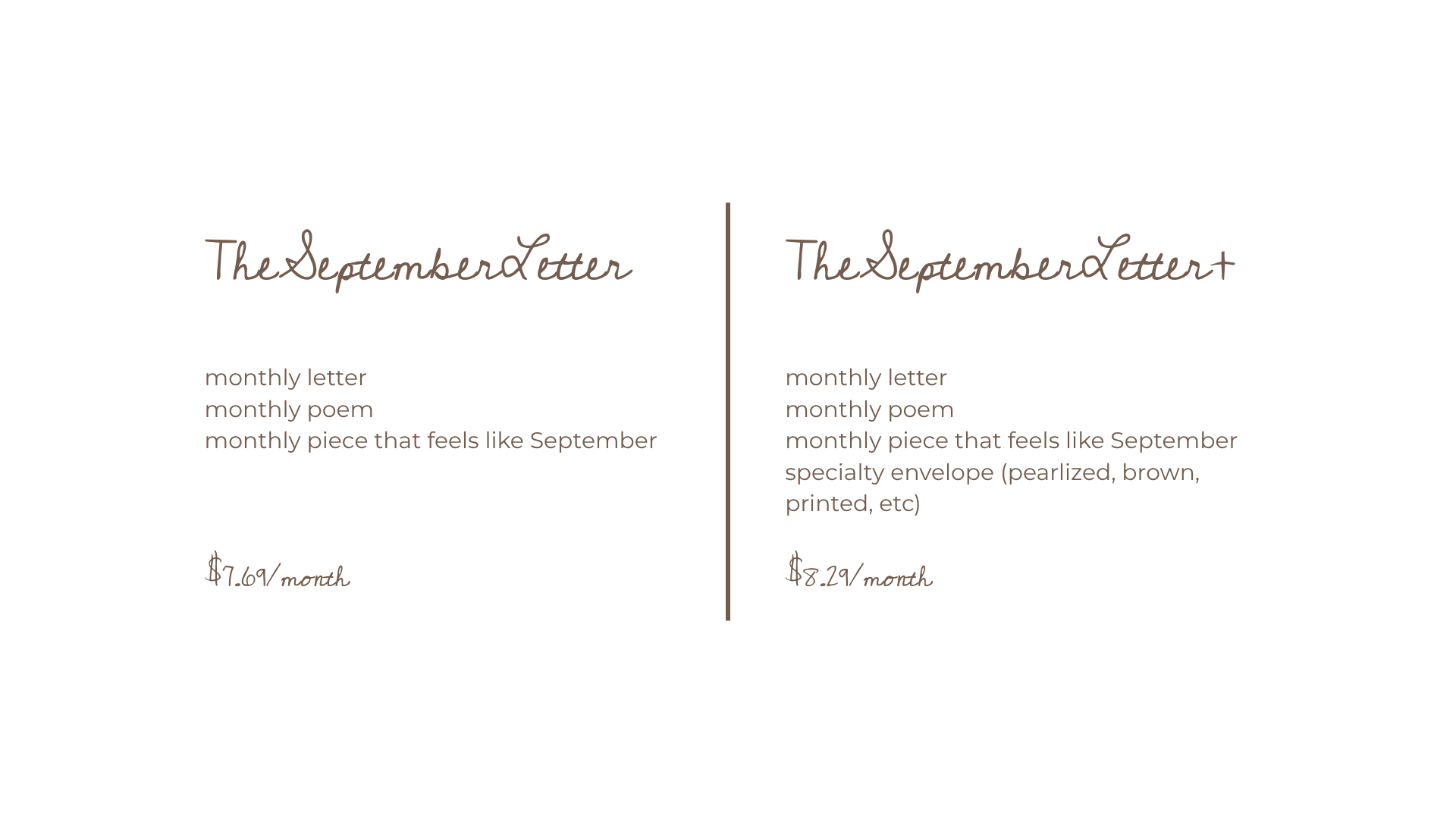 The September Letter snail mail club list will open on the 1st of each month and close on the 18th, or when the list is full. Letters ship by the 28th of each month. Monthly, you will receive a piece of mail that reminds you of what September's slowness feels, tastes, smells, or sounds like.